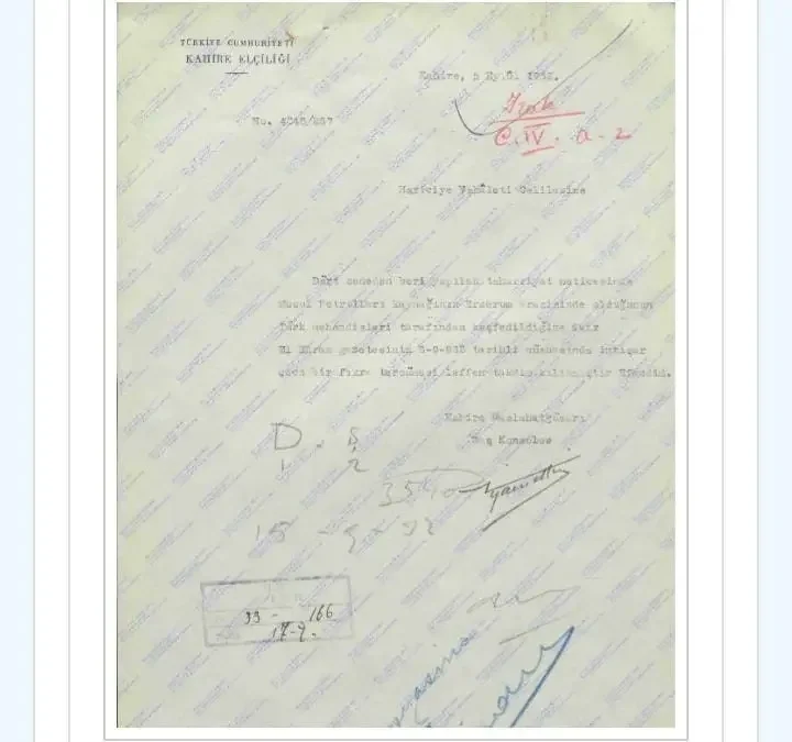 Belgeye göre, Musul petrollerini besleyen ana damarlar Erzurum topraklarından başlıyor ve o dönemde Türk mühendisler tarafından tespit edilmişti. Bu bilgi, 5 Eylül 1932 tarihinde Mısır’ın köklü gazetesi AlAhram tarafından yayımlandı. Gazetenin Yafa …